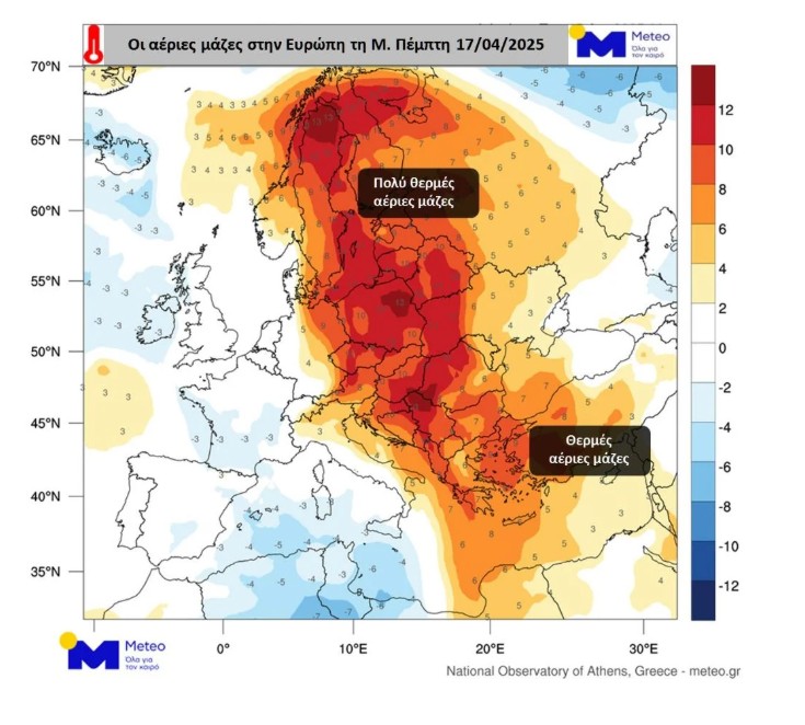 Άνοδο θα παρουσιάσει η θερμοκρασία έως και τη Μεγάλη Πέμπτη 17 Απριλίου, ενώ στη συνέχεια θα σημειώσει μικρή πτώση, διατηρούμενη ωστόσο σε ελαφρώς υψηλότερα από τα κανονικά για την εποχή επίπεδα.