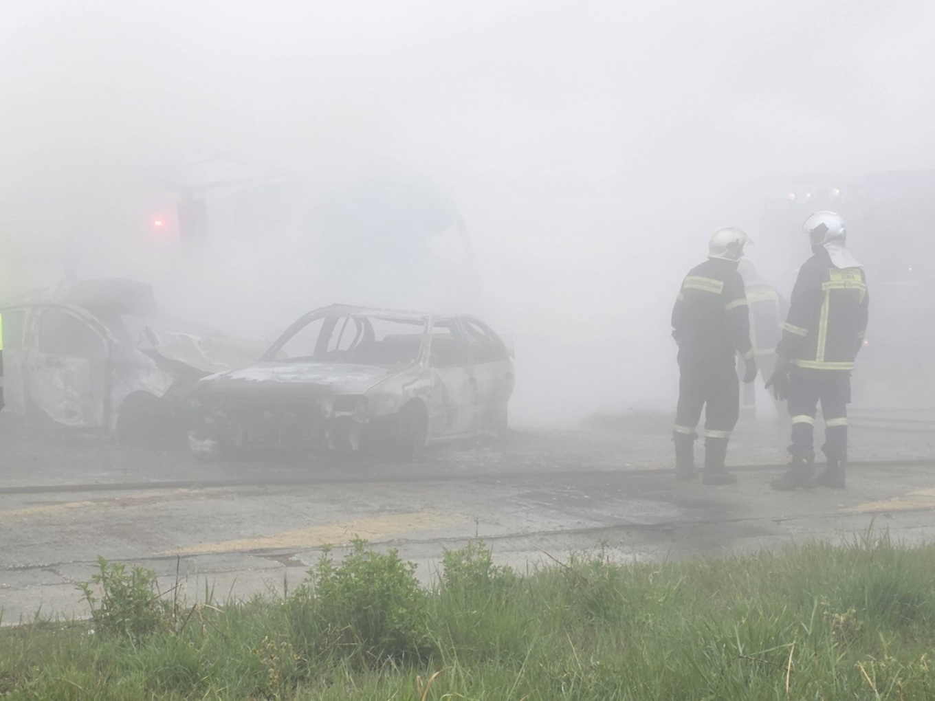 Σύμφωνα με πληροφορίες, το φορτηγό, κινούμενο υπό συνθήκες χαμηλής ορατότητας λόγω πυκνής ομίχλης, προσέκρουσε με σφοδρότητα σε δύο αυτοκίνητα πριν καταλήξει σε στηθαίο ασφαλείας και σε box των διοδίων Πολυμύλου, με αποτέλεσμα να ξεσπάσει φωτιά.