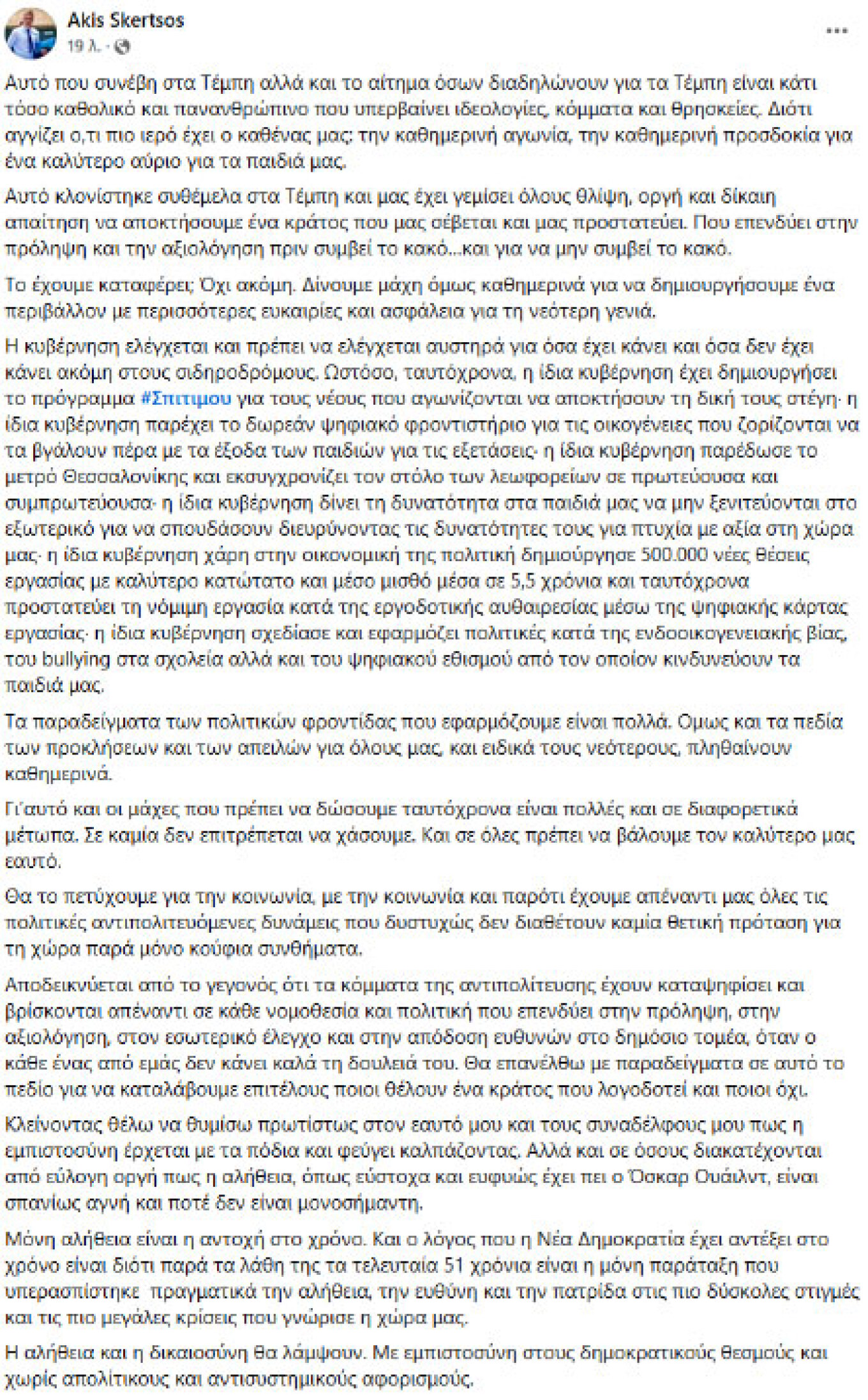 Όλη η ανάρτηση του Άκη Σκέρτσου: