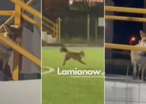 Μια αλεπού έκανε την εμφάνισή της στο γήπεδο των Γαλανέικων, στη βόρεια πλευρά της Λαμίας το βράδυ της Κυριακής. Η αλεπού, όχι μόνο πλησίασε το σημ...