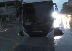 Κακοκαιρία «Μπάλλος»- Θεσσαλονίκη: Υποχώρησε οδόστρωμα και «κατάπιε»... λεωφορείο (Photos)