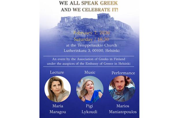 Με αφορμή τον εορτασμό της Παγκόσμιας Ημέρας Ελληνικής Γλώσσας (9 Φεβρουαρίου), ο Σύνδεσμος Ελλήνων Φινλανδίας, το Ευρωπαϊκό Σχολείο και η Ελληνική Πρεσβεία στο Ελσίνκι διοργανώνουν ένα διήμερο λόγου και μουσικής, αφιερωμένο στην άσβεστη φλόγα του Έλληνος Λόγο...