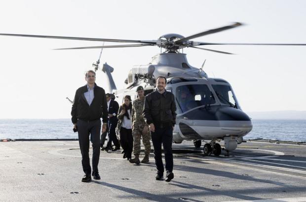 Ο Πρωθυπουργός Κυριάκος Μητσοτάκης και ο Πρόεδρος της Κυπριακής Δημοκρατίας Νίκος Χριστοδουλίδης επισκέφτηκαν τη φρεγάτα «Κίμων» του Πολεμικού Ναυτικού, που μαζί με τη φρεγάτα «Ψαρά» και τέσσερα μαχητικά F-16 V...