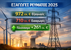 Κοντά στο 1 δισ. ευρώ έφθασαν το 2025 τα έσοδα από τις εξαγωγές ηλεκτρικής ενέργειας, με αποτέλεσμα το όφελος για το εμπορικό ισοζύγιο της χώρας σε σχέση με το 2019 να υπ...