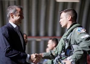 Στο υπόστεγο της αεροπορικής βάσης «Ανδρέας Παπανδρέου» στην Πάφο, όπου σταθμεύουν τα ελληνικά F-16 που έχουν μετασταθμεύσει στην Κύπρο, βρέθηκε το μεσημέρι της Δευτέρας ( 09.03.2026) ο πρωθυπουργός Κυριάκος Μη...