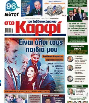 Μη χάσετε το Σάββατο 31 Ιανουαρίου 2026 το αποκαλυπτικό «Καρφί» που κυκλοφορεί σε όλα τα περίπτερα της χώρας με πλούσια θεματολογία και πολλές αποκλειστικότητες.
