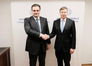 «Με τον Επίτροπο Ντομπρόβσκις συμφωνήσαμε ότι η Ευρώπη πρέπει να κινηθεί πέρα από τη διαχείριση των κρίσεων», τόνισε ο υπουργός Εθνικής Οικονομίας και Οικονομικών.
