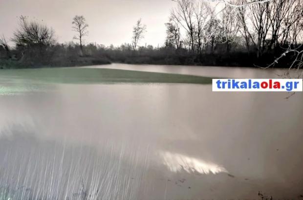 Τρίκαλα: Υπερχείλισε ο Πηνειός στα αναχώματα του Βαλομανδρίου και των Ρογκίων (Photos)