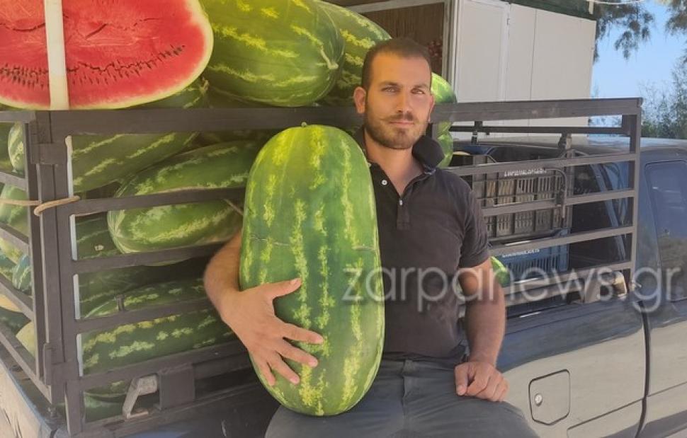 Μάλιστα δεν είναι η πρώτη φορά που ο συγκεκριμένος παραγωγός βγάζει το χωράφι του ένα τεράστιο καρπούζι.