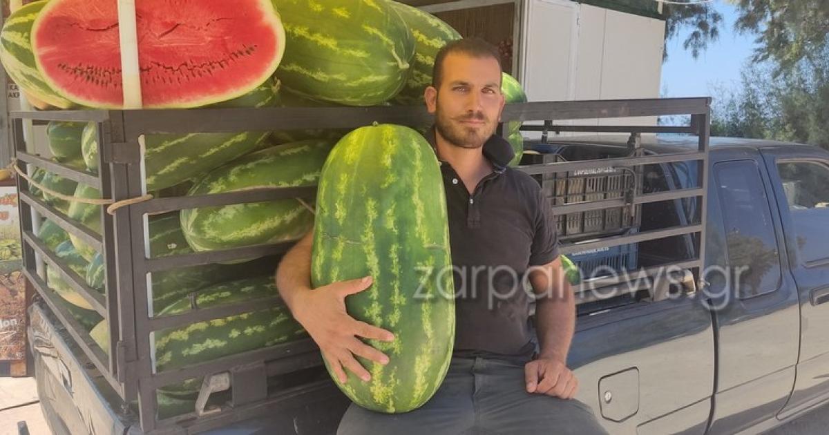 Ενα καρπούζι γίγας, βάρους σχεδόν 30 κιλών και 60 εκατοστών, έκοψε από το χωράφι του ένας παραγωγός στα Χανιά.