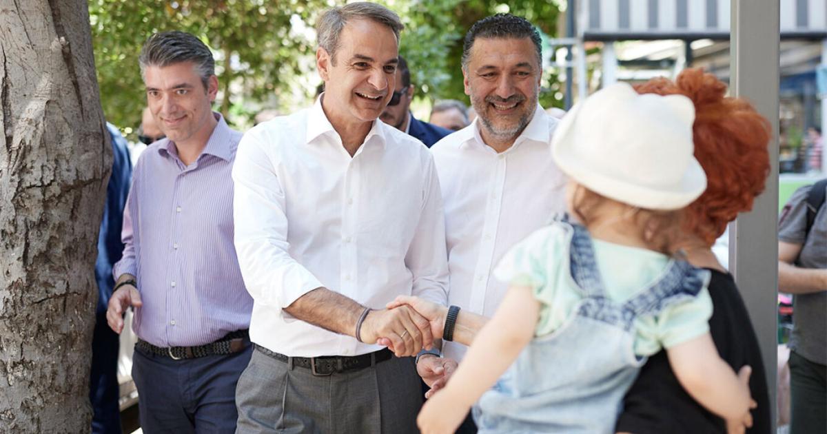 Ο Κυριάκος Μητσοτάκης περιηγήθηκε στην τοπική αγορά και συνομίλησε με καταστηματάρχες και περαστικούς.