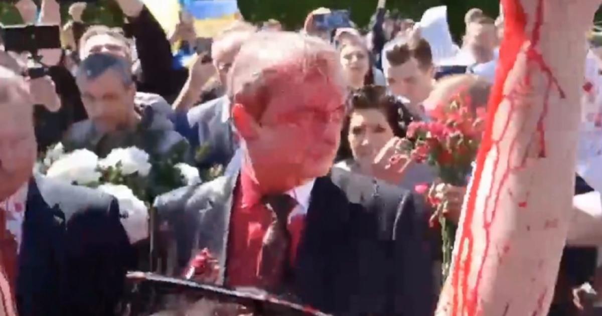 In 🇵🇱 Warsaw, 🇷🇺 Ambassador Andreev was covered in red paint when he tried to lay flowers at the cemetery of Soviet soldiers, according to media reports.#VictoryDay #Ukraina #Poland #Russian pic.twitter.com/ccdx9R9FRk