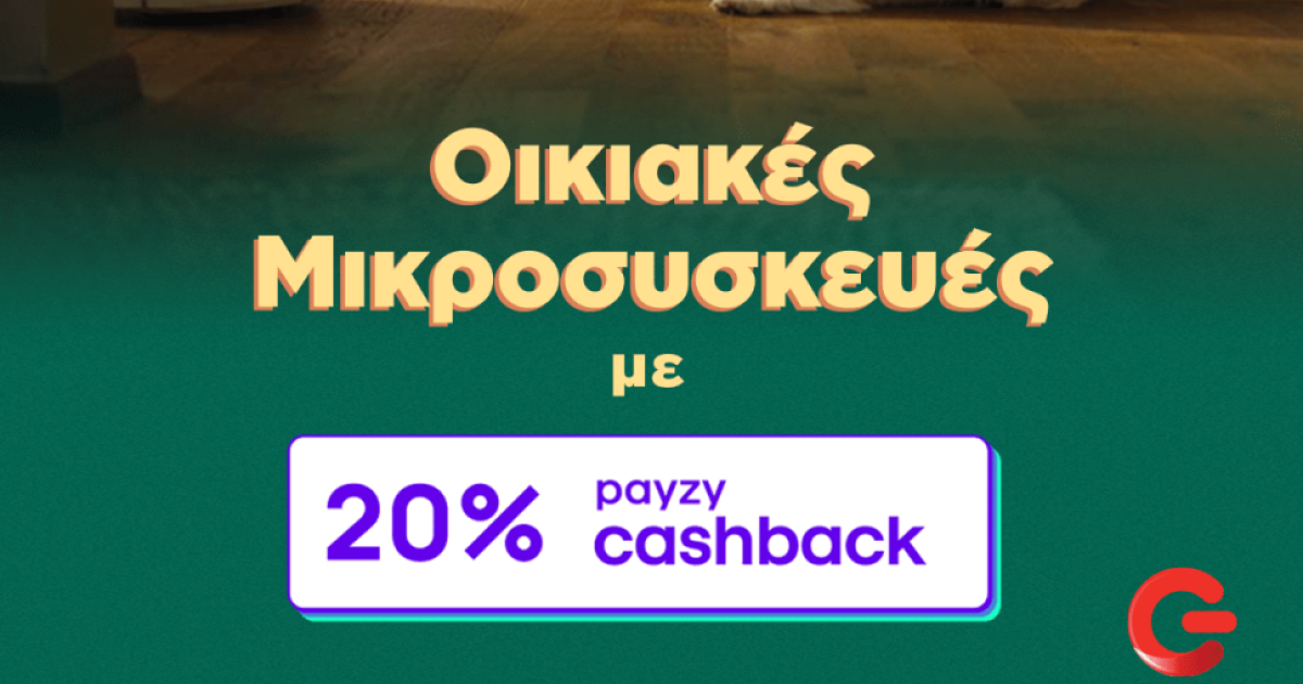 Το 20% της αξίας των αγορών τους σε ευρώ (cashback) κερδίζουν οι καταναλωτές που κάνουν τις αγορές τους στον ΓΕΡΜΑΝΟ αποκλειστικά σε οικιακές μικροσυσκευές με payzy by COSMOTE. Η προσφορά ισχύει μέχρι και τις 17 Μαρτίου για αγορές οικιακών μικροσυσκευών συνολικής αξίας από 69€ και άνω, στα καταστήματα ΓΕΡΜΑΝΟΣ σε όλη την Ελλάδα, αλλά και online στο www.germanos.gr.
