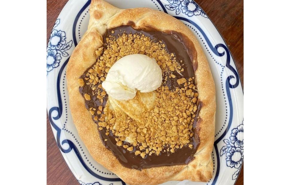 Τέλος, ψήνουμε τα γλυκά πεϊνιρλί σε προθερμασμένο φούρνο, στον αέρα, στους 175 βαθμούς, για περίπου είκοσι με εικοσιπέντε λεπτά. Αφού κρυώσουν, τα πασπαλίζουμε με τριμμένο μπισκότο και τα συνοδεύουμε με παγωτό βανίλια.
