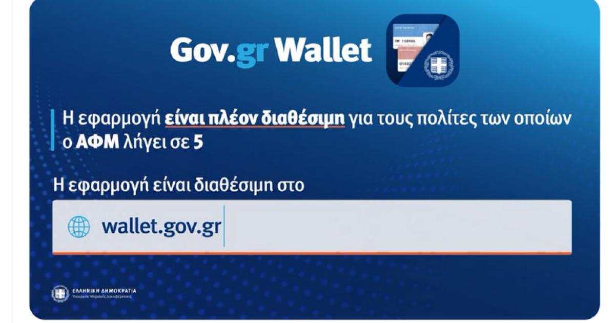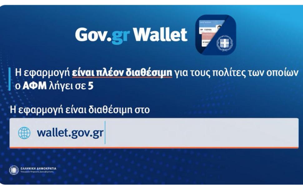 Άνοιξε η πλατφόρμα https://wallet.gov.gr και για τους πολίτες των οποίων το ΑΦΜ τελειώνει σε 5, οι οποίοι επιθυμούν να ενεργοποιήσουν το ψηφιακό δελτίο ταυτότητας και το ψηφιακό δίπλωμα οδήγησης.