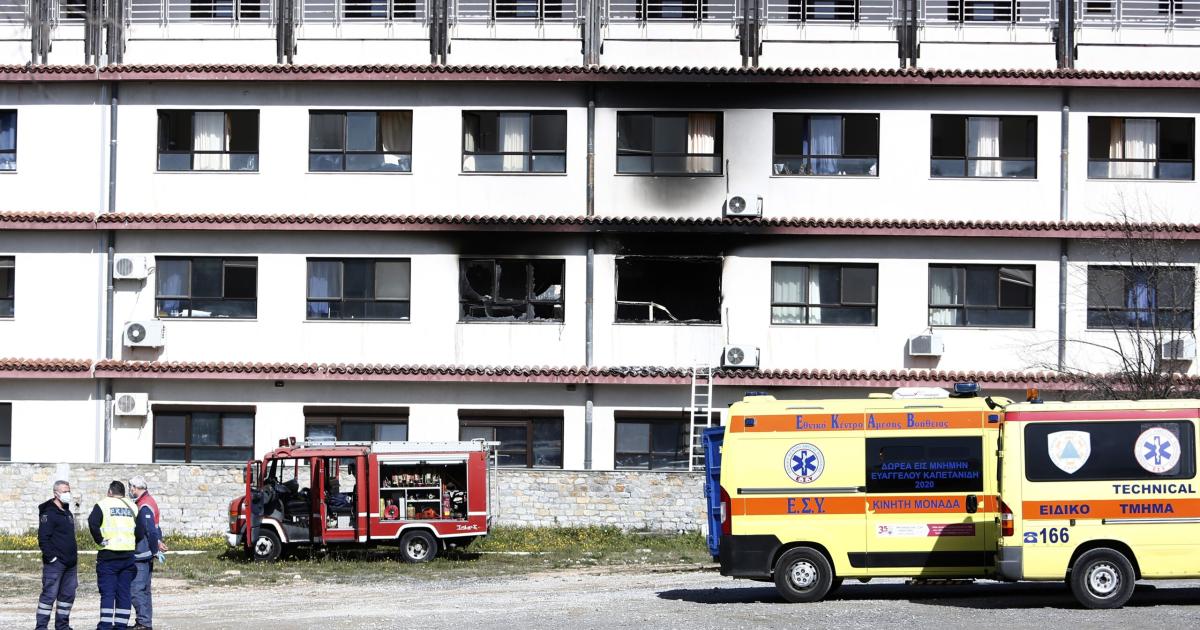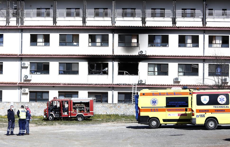 The fire department said it had evacuated 34 patients from the Covid-19 ward of the Papanikolaou hospital.