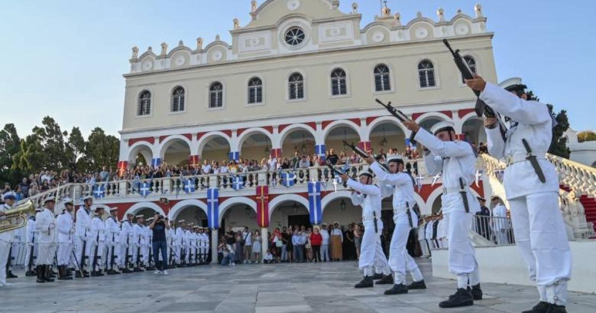 Ο ναός της Παναγιάς της Τήνου είναι στολισμένος με σημαίες και αφιερώματα, ενώ γονυπετείς ανεβαίνουν τη λεωφόρο της Μεγαλόχαρης πιστοί εκπληρώνοντας τα τάματα που έχουν κάνει, μεταδίδει το Mega.