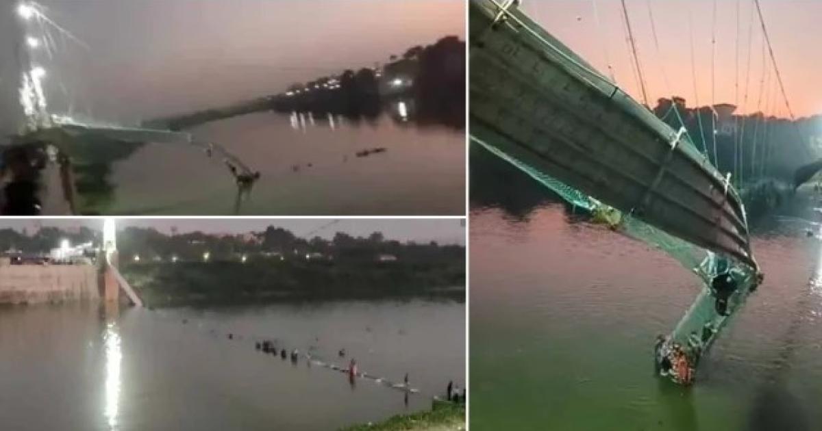 #Breaking: A cable bridge in Morbi, Gujarat collapsed. About 400+ people are reported to have fallen into the river. Several of them are said to have drowned. pic.twitter.com/3qMZuz1X3W