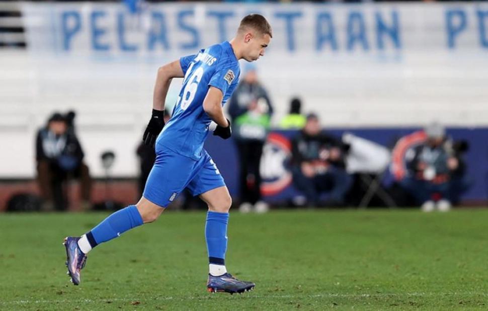 Ο 17χρονος μέσος του Ολυμπιακού πέρασε ως αλλαγή στον αγωνιστικό χώρο στις καθυστερήσεις του ματς, πραγματοποιώντας το ντεμπούτο του με την Εθνική και έγινε ο νεότερος παίκτης σε επίσημο ματς της.