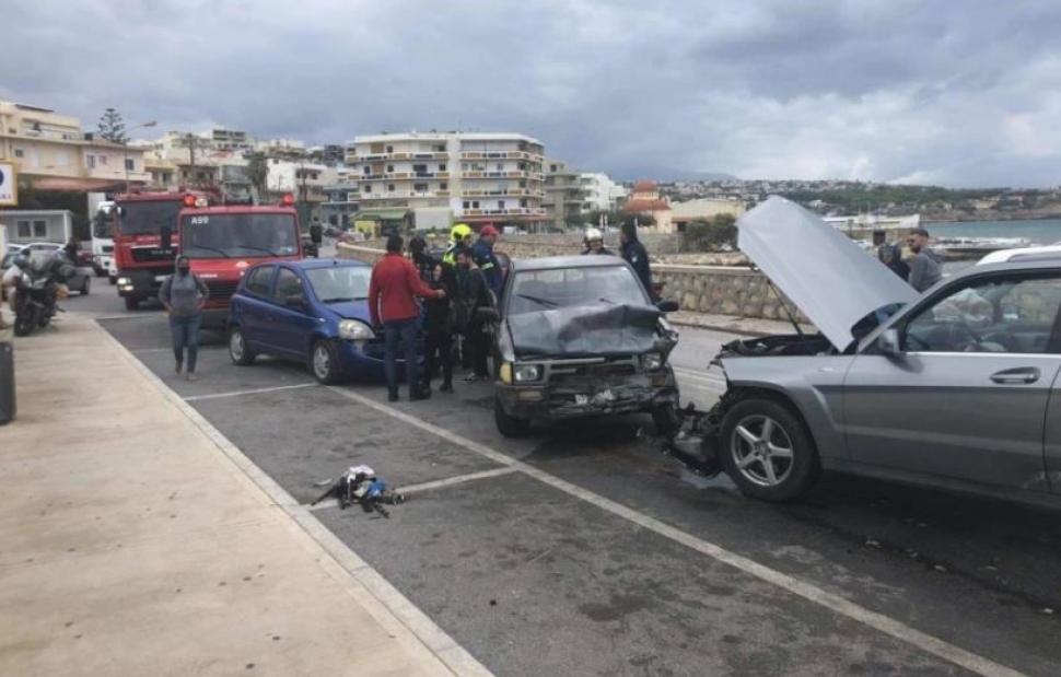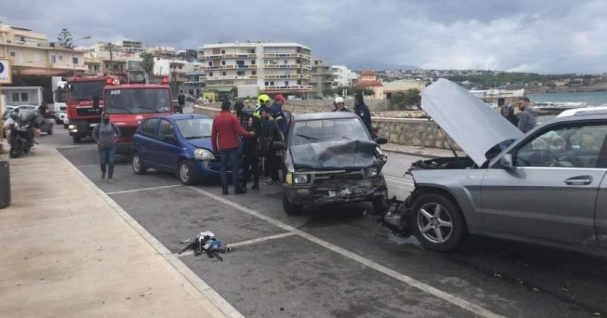 Όλα συνέβησαν όταν τουρίστας οδηγός ενός οχήματος που κινούνταν από το Λιμάνι με κατεύθυνση προς την Σταμαθιουδάκη κάτω από αδιευκρίνιστες συνθήκες έχασε τον έλεγχο του οχήματος και προσέκρουσε πάνω σε δυο σταθμευμένα αυτοκίνητα και τέσσερα ακόμη τα οποία εκείνη την ώρα κινούνταν στον Περιφερειακό στο ύψος του ΚΤΕΛ.