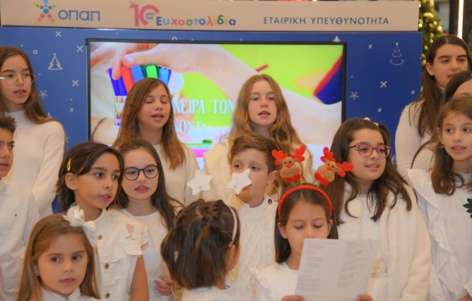 Όσοι απόλαυσαν τα χριστουγεννιάτικα τραγούδια από τη χορωδία, είχαν στη συνέχεια την ευκαιρία να επισκεφθούν την έκθεση των Ευχοστολιδιών με τις ζωγραφιές παιδιών από τον Οργανισμό «Το Χαμόγελο του Παιδιού», να αγοράσουν τα δώρα που αποτυπώνονταν στις ζωγραφιές και να κάνουν έτσι παιδικές ευχές πραγματικότητα.