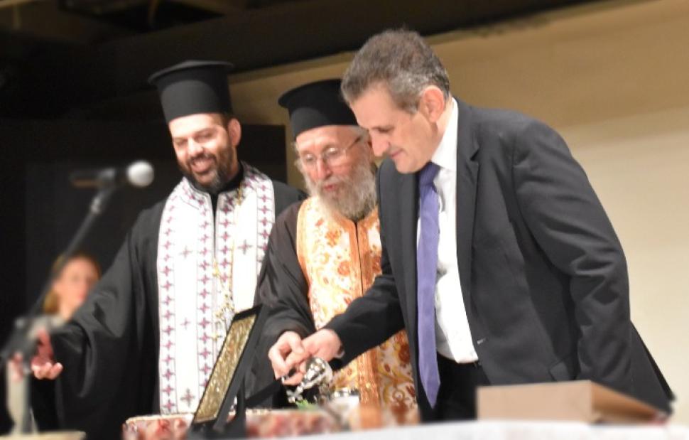 Στη συνέχεια ο Πατέρας Σισώης του Ιερού Ναού Μεταμόρφωσης του Σωτήρος Καλλιθέας και ο Πατέρας Ηλίας του Ιερού Ναού Αγίου Νικολάου Καλλιθέας , ευλόγησαν την βασιλόπιτα , και ο οικοδεσπότης Δήμαρχος Καλλιθέας Δημήτρης Κάρναβος , κόβοντας την βασιλόπιτα , μοίρασε τα κομμάτια στους Δημοτικούς Συμβούλους και στους Προέδρους των Κοινοτικών Συμβουλίων.