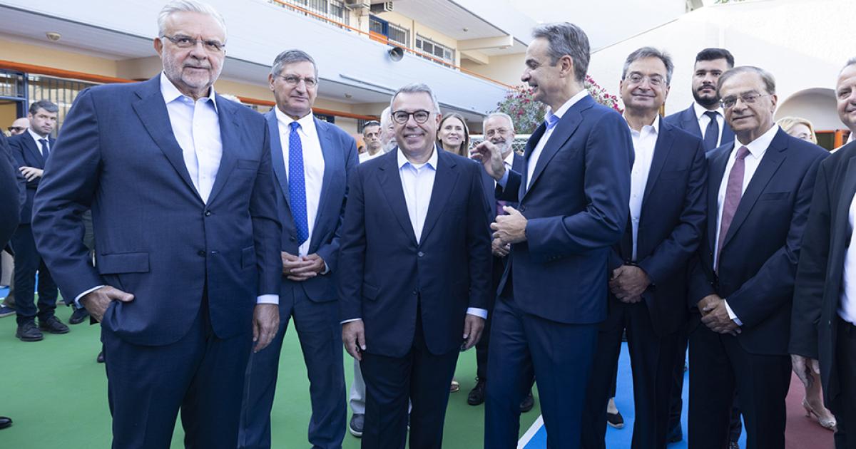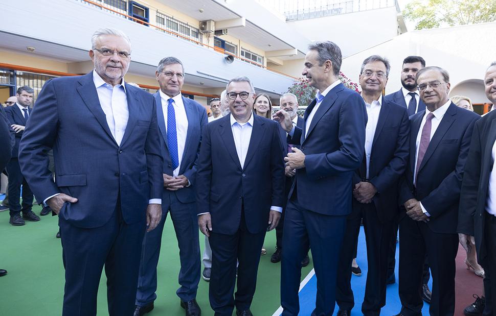 Το 8ο Δημοτικό Σχολείο Νέας Φιλαδέλφειας επισκέφθηκαν σήμερα οι Διευθύνοντες Σύμβουλοι της Alpha Bank Βασίλης Ψάλτης, της Eurobank Φωκίων Καραβίας, της Εθνικής Τράπεζας Παύλος Μυλωνάς και της Πειραιώς Χρήστος Μεγάλου, καθώς και ο πρόεδρος της Ελληνικής Ένωσης Τραπεζών Γκίκας Χαρδούβελης, συνοδεύοντας τον Πρωθυπουργό Κυριάκο Μητσοτάκη στην τελετή αγιασμού για την έναρξη της νέας σχολικής χρονιάς.