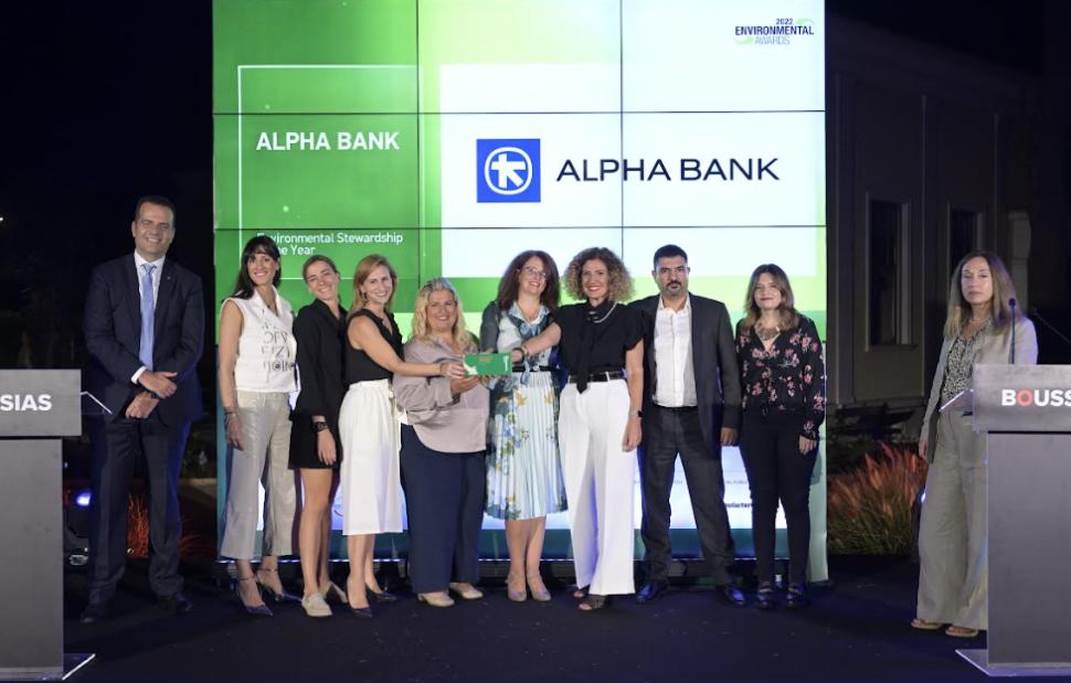 Με την κορυφαία διάκριση «Environmental Stewardship of the Year» και 5 σημαντικά βραβεία τιμήθηκε η Alpha Bank στην Τελετή Απονομής των Environmental Awards 2022, την Τετάρτη, 28 Σεπτεμβρίου, επιβεβαιώνοντας την υψηλή περιβαλλοντική της υπευθυνότητα και τον θετικό αντίκτυπο των δράσεων που υλοποιεί για το Περιβάλλον και την Κοινωνία.
