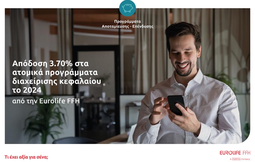 Υψηλή απόδοση για ακόμα μια χρονιά κατέγραψε το χαρτοφυλάκιο επενδύσεων των ατομικών προγραμμάτων διαχείρισης κεφαλαίου της Eurolife FFH, με το ποσοστό για το 2024 να φτάνει το 3.70%. Η σημαντική αυτή απόδοση αποδεικνύει για άλλη μια φορά τη διαχρονική ικανότητα της εταιρείας να σχεδιάζει και να υλοποιεί επενδυτικές λύσεις που προσφέρουν ουσιαστικό όφελος στους ασφαλισμένους της. Αξίζει να σημειωθεί ότι η φετινή απόδοση του 3.70% είναι αυξημένη σε σχέση με το, επίσης υψηλό, ποσοστό του 2023, το οποίο είχε διαμορφωθεί στο 3.13%, μια αύξηση που επιβεβαιώνει ακόμα περισσότερο την επιτυχία και τη σιγουριά της επενδυτικής στρατηγικής της Eurolife FFH.