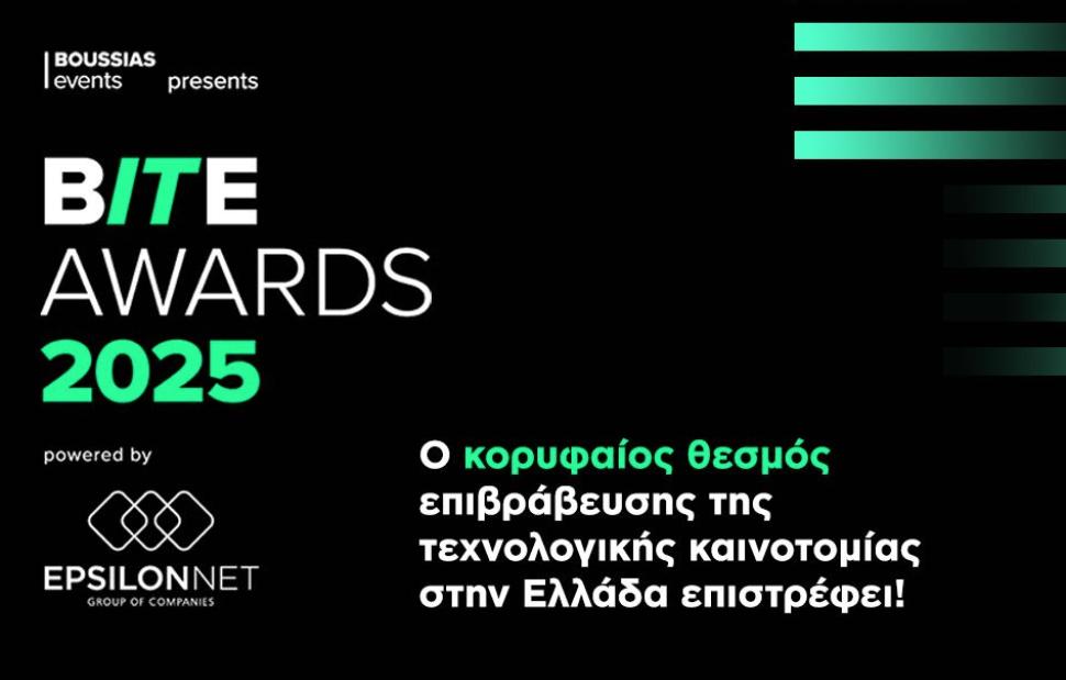 Τα BITE Awards επιστρέφουν δυναμικά για 14η χρονιά, επιβεβαιώνοντας τη θέση τους ως ο σημαντικότερος θεσμός επιβράβευσης της τεχνολογικής καινοτομίας στην Ελλάδα. Στη φετινή διοργάνωση της BOUSSIAS, ο Όμιλος EPSILON NET πρωτοστατεί ως Χορηγός Τίτλου των Βραβείων, παραμένοντας πιστός στη δέσμευσή του να στηρίζει την εξέλιξη των επιχειρηματικών διαδικασιών και τη μετάβαση προς τον ψηφιακό μετασχηματισμό των επιχειρήσεων. Ο Όμιλος, αξιοποιώντας την τεχνογνωσία και την ηγετική του θέση στην αγορά επιταχύνει τη μετάβαση των ελληνικών επιχειρήσεων στην ψηφιακή εποχή, προσφέροντας λύσεις που προσδίδουν προστιθέμενη αξία και ενδυναμώνουν τη βιώσιμη ανάπτυξή τους.