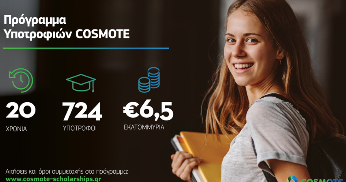 Ανοικτή θα είναι μέχρι τις 8/10 η πλατφόρμα για δηλώσεις συμμετοχής στο Πρόγραμμα Υποτροφιών COSMOTE, που φέτος συμπληρώνει 20 χρόνια.