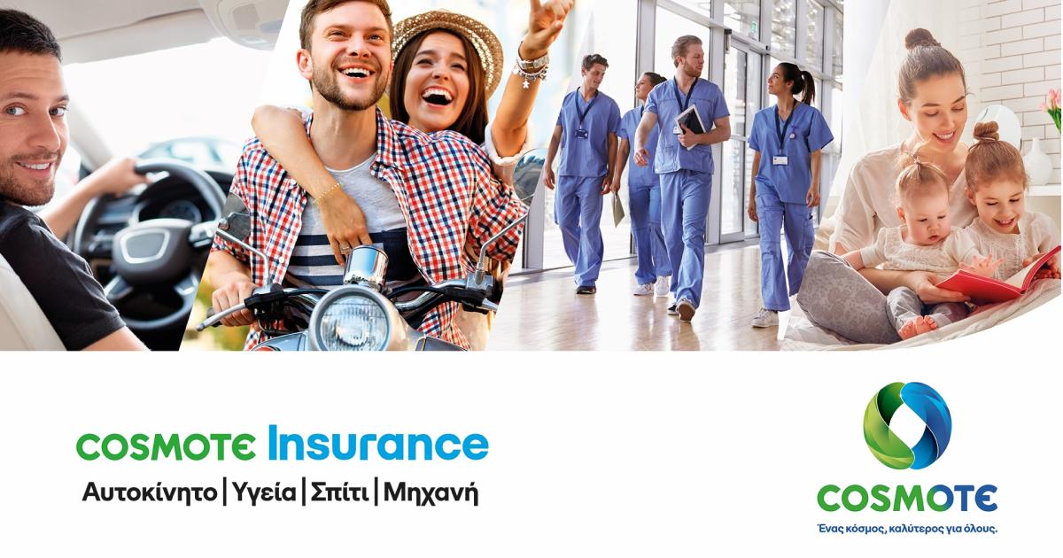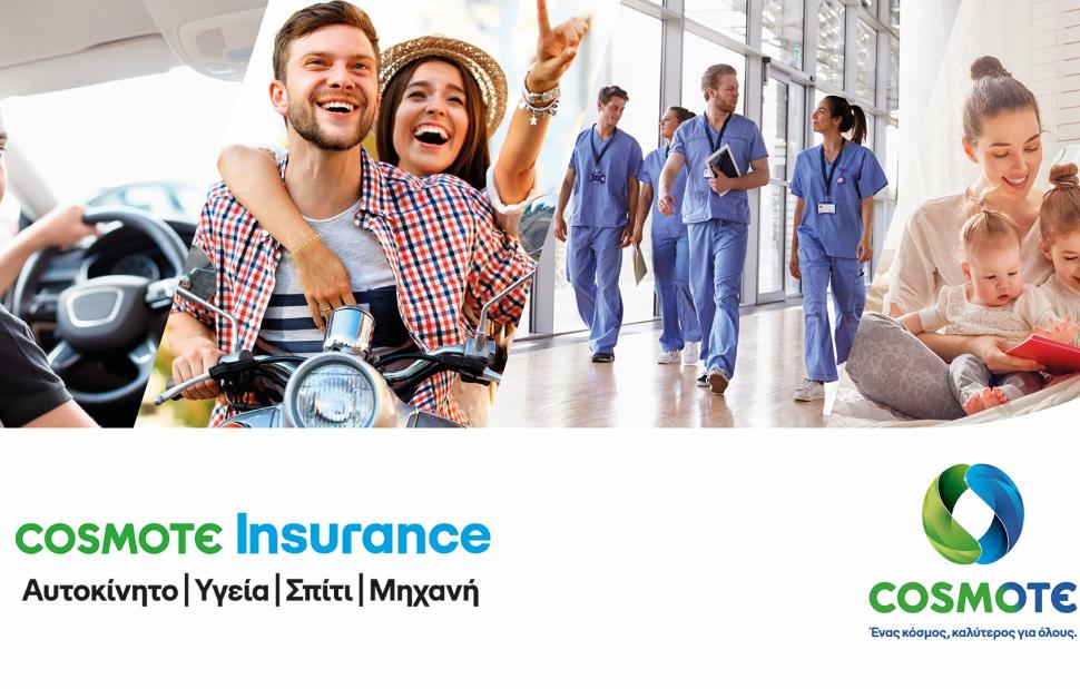 Το COSMOTE Insurance παρέχει ολοκληρωμένες ασφαλιστικές λύσεις για το αυτοκίνητο, την μοτοσυκλέτα, το φορτηγό και το αγροτικό, την κατοικία, την πρωτοβάθμια υγεία και το σκάφος, σε συνεργασία με 18 κορυφαίες ασφαλιστικές εταιρείες. Η ταχύτητα, η διαφάνεια και η πληρότητα στις πληροφορίες, κάνουν το COSMOTE Insurance να ξεχωρίζει, αφού ο πελάτης μπορεί να συγκρίνει online brands, τιμές, καλύψεις, απαλλαγές και στο τέλος να επιλέξει το πρόγραμμα που ταιριάζει στις ασφαλιστικές του ανάγκες και στον προϋπολογισμό του. Με εγγύηση χαμηλότερης τιμής και καθοδήγηση 24/7 από πιστοποιημένους συμβούλους ασφαλίσεων, που είναι δίπλα στον πελάτη πριν, κατά τη διάρκεια, και μετά την αγορά του ασφαλιστηρίου.