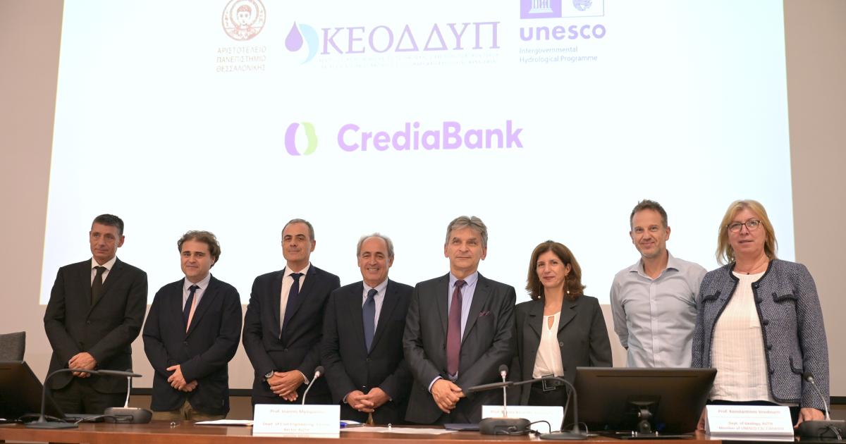 Ένα σημαντικό βήμα προς την κατεύθυνση της βιώσιμης ανάπτυξης και της προστασίας του περιβάλλοντος σηματοδοτεί το Μνημόνιο Συνεργασίας μεταξύ της CrediaBank και του Κέντρου UNESCO Ολοκληρωμένης και Διεπιστημονικής Διαχείρισης Υδατικών Πόρων του Αριστοτέλειου Πανεπιστημίου Θεσσαλονίκης (ΑΠΘ), που υπεγράφη στο πλαίσιο του Διεθνούς Συμποσίου “Νερό και Βιωσιμότητα: 50 χρόνια Διακυβερνητικού Υδρολογικού Προγράμματος της UNESCO”.