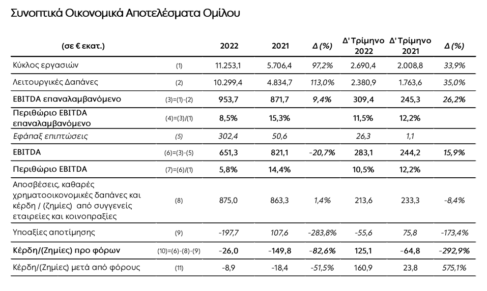 To EBITDA του 2022, επηρεάστηκε αρνητικά: