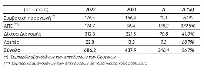 Οι συνολικές επενδύσεις το 2022 διαμορφώθηκαν σε €686,2 εκατ. έναντι €437,9 εκατ. το 2021.