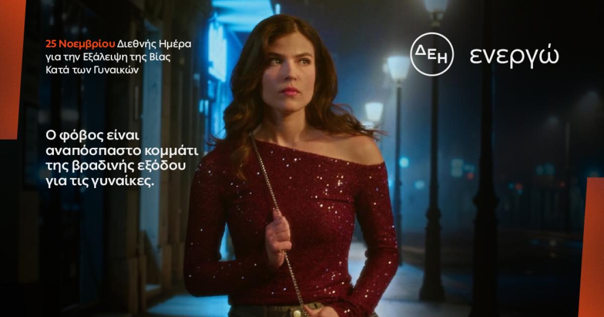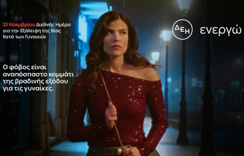 Για πέμπτη συνεχή χρονιά η ΔΕΗ συμμετέχει ενεργά στη Διεθνή Ημέρα για την Εξάλειψη της Έμφυλης Βίας, φωτίζοντας μια καθημερινή και βαθιά ριζωμένη εμπειρία ανασφάλειας, τον φόβο που βιώνουν γυναίκες όλων των ηλικιών κατά τη βραδινή τους έξοδο. Η νέα πανελλαδική έρευνα επιβεβαιώνει ότι για 8 στις 10 γυναίκες η επιστροφή από μια βραδινή έξοδο δεν αποτελεί μια απλή διαδρομή, αλλά μια διαδικασία που συνοδεύεται από φόβο, επιφύλαξη και συστηματικά μέτρα αυτοπροστασίας.
