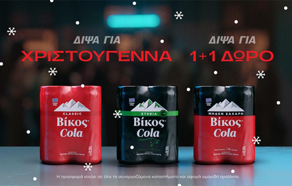 Η ενέργεια, ο αυθορμητισμός και τα δώρα της Βίκος Cola πρωταγωνιστούν και φέτος στο χριστουγεννιάτικο τραπέζι. Όπως κάθε χρόνο, έτσι και φέτος η Βίκος Cola συνοδεύει την κάθε σας στιγμή, με την 1+1 προσφορά που έχετε αγαπήσει.