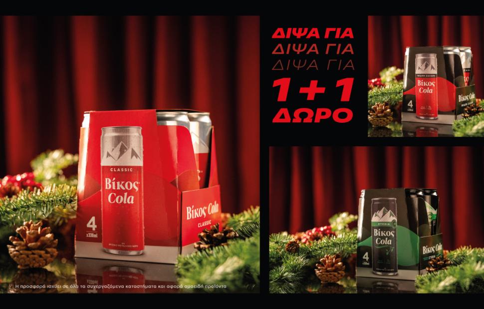 Από τις 17 Δεκεμβρίου 2024 έως τις 3 Ιανουαρίου 2025, η Βίκος Cola σε συσκευασία αλουμινίου διατίθεται με την ειδική προσφορά 1+1*, συνοδεύοντας και απογειώνοντας με τη γεύση της όλες τις όμορφες στιγμές των γιορτών.
