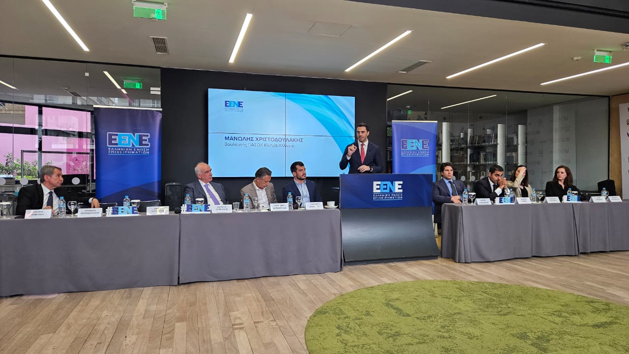Εκδήλωση της Ελληνικής Ένωσης Επιχειρηματιών (Ε.ΕΝ.Ε) με θέμα “Ελλάδα-Ευρώπη, η Επόμενη Μέρα” πραγματοποιήθηκε την Πέμπτη 09/05 στο BCA College. Την εκδήλωση προλόγισε ο κ. Κρίστιαν Χατζημηνάς, Πρόεδρος της Ε.ΕΝ.Ε. και συντόνισε ο κ. Παύλος Ευθυμίου, Γενικός Διευθυντής της Ε.ΕΝ.Ε, ενώ κεντρικοί ομιλητές της εκδήλωσης ήταν ο κ. Βαγγέλης Μεϊμαράκης, Αντιπρόεδρος Ευρωπαϊκού Λαϊκού Κόμματος, π. Πρόεδρος Νέα Δημοκρατίας και Επικεφαλής Ευρωβουλευτών Νέας Δημοκρατίας, ο κ. Μανώλης Χριστοδουλάκης, Βουλευτής ΠΑΣΟΚ Κίνημα Αλλαγής, η κα. Έλενα Κουντουρά, Ευρωβουλευτής ΣΥΡΙΖΑ, η κα. Μαρινίκη Θεοδώρου, Υποψήφια Ευρωβουλευτής ΠΑΣΟΚ Κίνημα Αλλαγής, ο κ. Ανδρέας Λοβέρδος, Πρόεδρος του κόμματος Δημοκράτες, ο κ. Ορέστης Ομράν, Υποψήφιος Ευρωβουλευτής ΝΔ, η κα. Έφη Καζαντζή, Υποψήφια Ευρωβουλευτής Πλεύση Ελευθερίας, και η κα. Αφροδίτη Λατινοπούλου, Πρόεδρος Φωνή Λογικής.