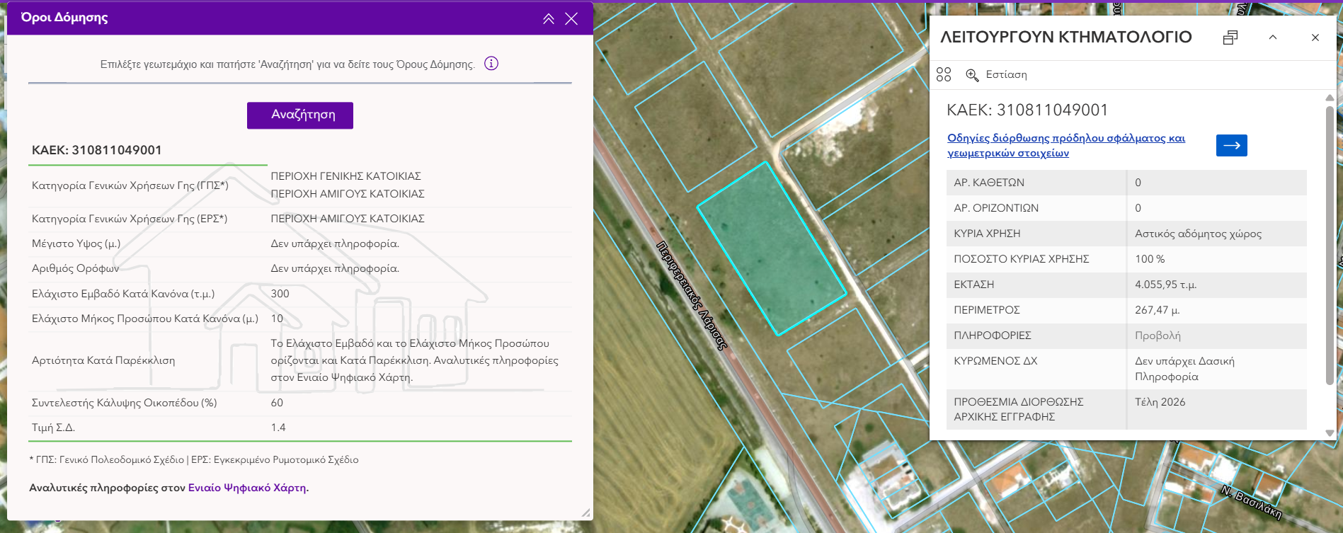 - δεν εμφανίζεται πληροφορία για όρους δόμησης όταν αυτοί καλύπτουν λιγότερο από το 10% της έκτασης του γεωτεμαχίου