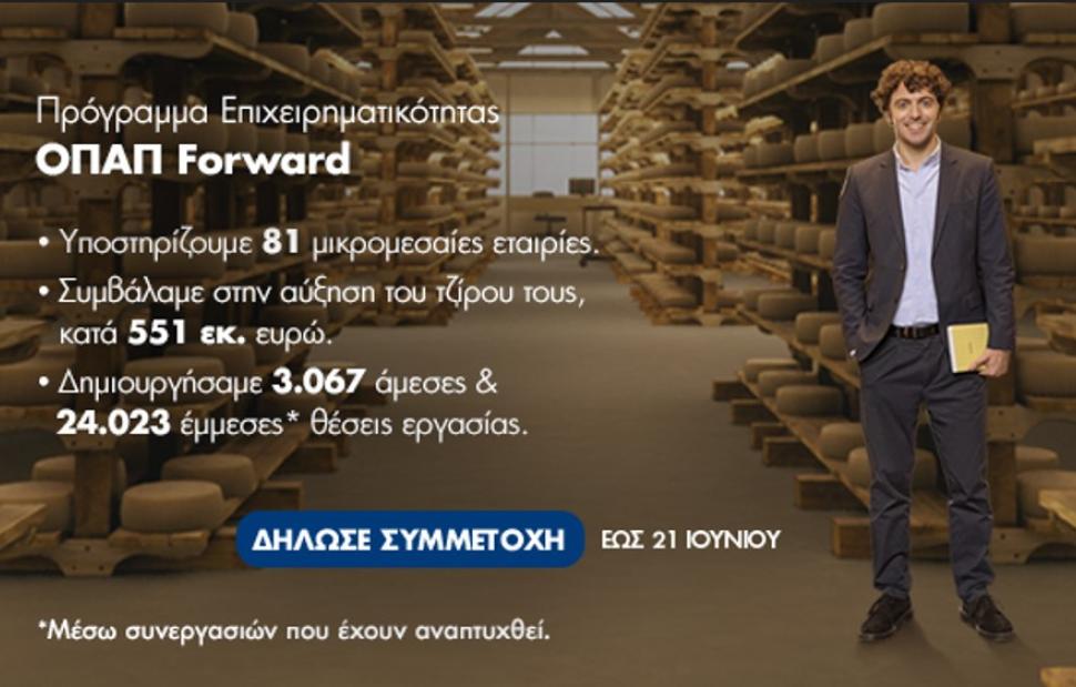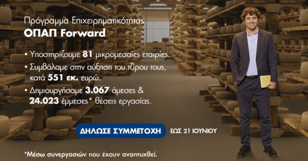 Το πρόγραμμα ΟΠΑΠ Forward ξεκίνησε το 2016 και μέχρι σήμερα έχει βοηθήσει έμπρακτα 81 μικρομεσαίες επιχειρήσεις από όλη την Ελλάδα να βελτιώσουν τις οικονομικές επιδόσεις τους και να αυξήσουν το ανθρώπινο δυναμικό τους. Συγκεκριμένα, με τη στήριξη του ΟΠΑΠ και της Endeavor Greece, οι συμμετέχουσες εταιρείες έχουν δημιουργήσει 3.067 νέες άμεσες θέσεις εργασίας συνολικά, ενώ υποστηρίζουν 24.023 νέες έμμεσες θέσεις απασχόλησης, μέσω συνεργασιών που έχουν αναπτυχθεί. Παράλληλα, έχουν αυξήσει τον κύκλο εργασιών τους συνολικά κατά 551 εκατ. ευρώ, καταγράφοντας δηλαδή κατά μέσο όρο ποσοστιαία αύξηση τζίρου 50% στη διάρκεια της συμμετοχής τους στο πρόγραμμα.