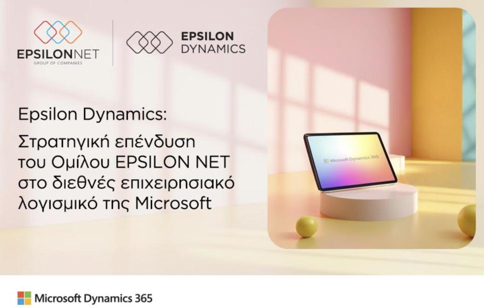 Ο Όμιλος EPSILON NET, ο μεγαλύτερος Όμιλος Πληροφορικής στην Ελλάδα και Ηγέτης του Ψηφιακού Μετασχηματισμού των Ελληνικών Επιχειρήσεων, προχώρησε στη δημιουργία της Epsilon Dynamics, μιας επιχειρηματικής μονάδας (Business Unit), που εστιάζει αποκλειστικά στο διεθνές επιχειρησιακό λογισμικό, αξιοποιώντας τις λύσεις της Microsoft.