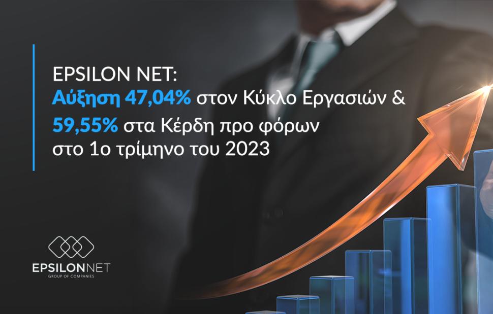 Ο Όμιλος Εταιριών EPSILON NET, συνέχισε με επιτυχία και το 1ο τρίμηνο του 2023, την εφαρμογή του επιχειρηματικού του σχεδιασμού, με αποτέλεσμα τη σημαντική αύξηση των οικονομικών μεγεθών του, η οποία αποτυπώνει την κυρίαρχη θέση του στον τομέα του Business Software.