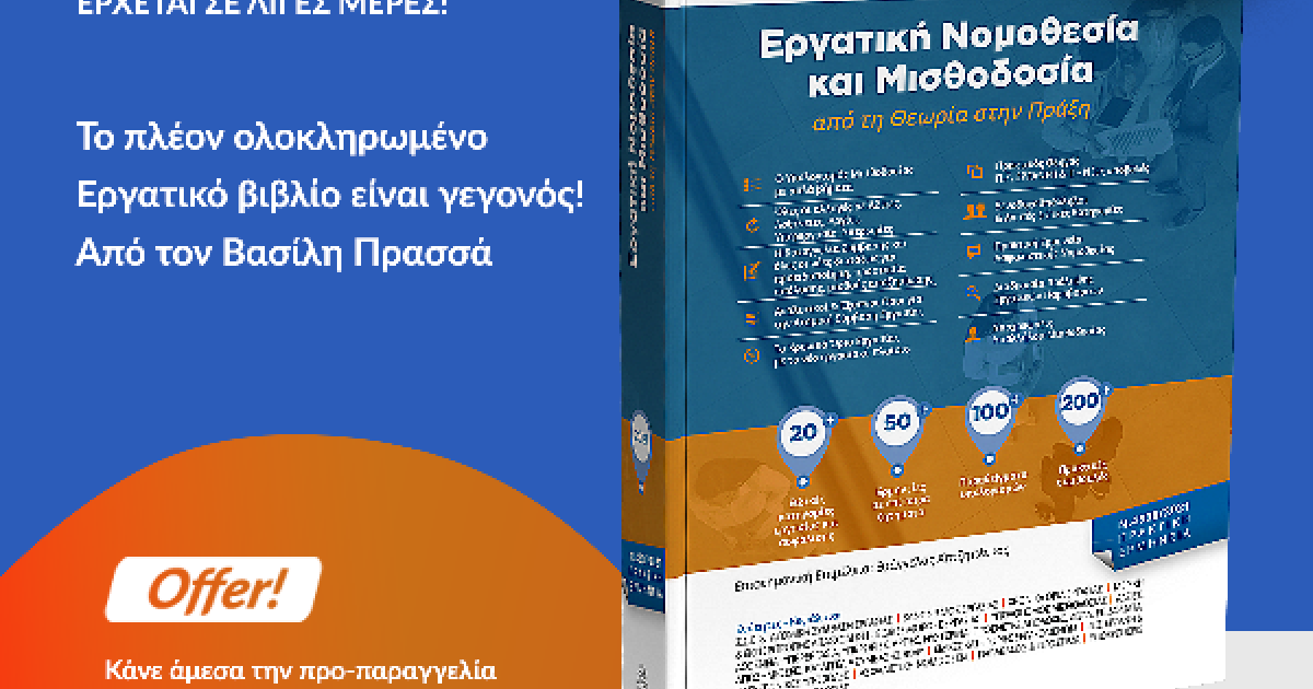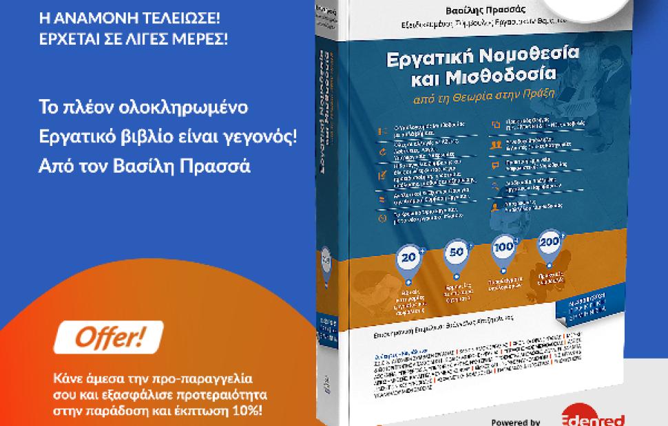 Το νέο βιβλίο του Βασίλη Πρασσά, Εξειδικευμένου Συμβούλου Εργασιακών Θεμάτων, με τίτλο «Εργατική Νομοθεσία και Μισθοδοσία, από τη Θεωρία στην Πράξη» κυκλοφορεί. Δεδομένου των καταιγιστικών αλλαγών που συντελούνται στην εργατική νομοθεσία και των προβλημάτων που προκύπτουν στην καθημερινότητα όλων, η συγκεκριμένη έκδοση αποτελεί τον απαραίτητο σύμμαχο στον εργασιακό κλάδο και πλήρη οδηγό υποχρεώσεων των επιχειρήσεων. Ο πρακτικός αυτός οδηγός προσφέρει τεκμηριωμένη ερμηνεία νόμων, εγκυκλίων, αποφάσεων, διατάξεων και πρακτικών συμβουλών.