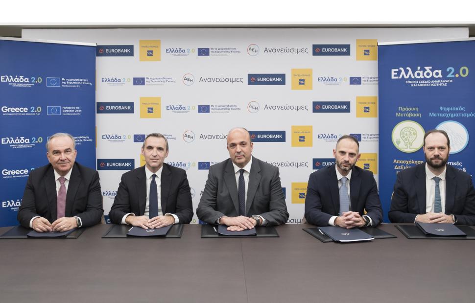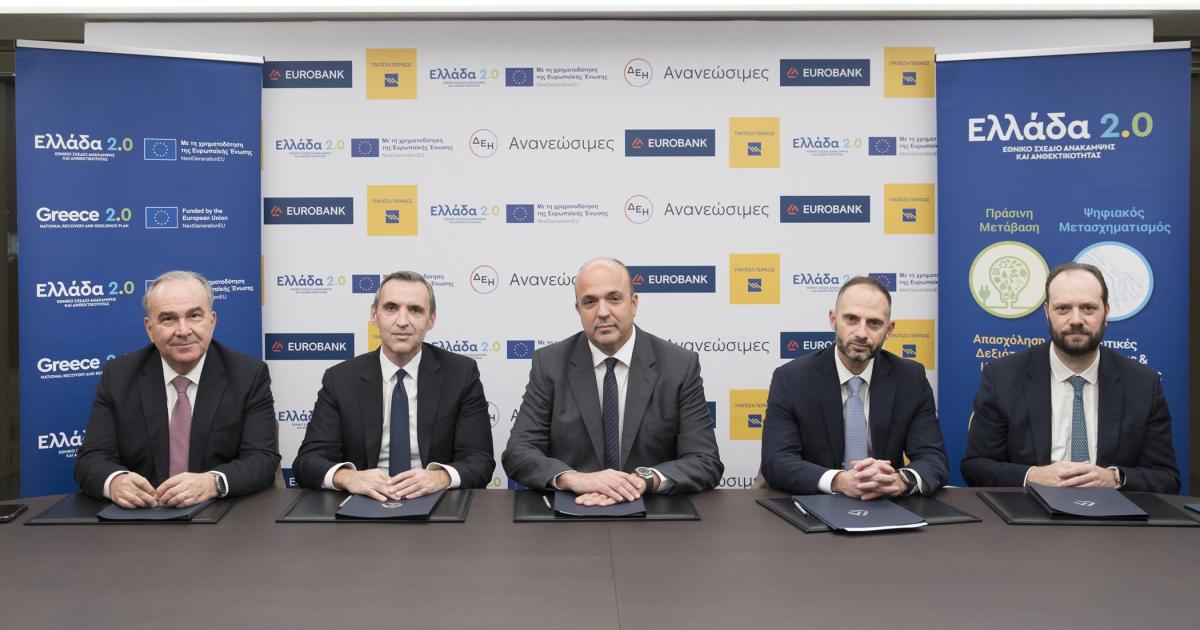 Με συντονιστή διοργάνωσης την Eurobank και συνδιοργανωτές την Eurobank και την Τράπεζα Πειραιώς, έχει ολοκληρωθεί η υπογραφή κοινοπρακτικής χρηματοδότησης της Φοίβη Ενεργειακή Μονοπρόσωπη Α.Ε., θυγατρικής εταιρείας της ΔΕΗ Ανανεώσιμες, στο πλαίσιο του Εθνικού Σχεδίου Ανάκαμψης και Ανθεκτικότητας «Ελλάδα 2.0». Η χρηματοδότηση εξασφαλίζει την ολοκλήρωση της κατασκευής ενός από τους μεγαλύτερους Φωτοβολταϊκούς (Φ/Β) Σταθμούς στην Ευρώπη, ονομαστικής ισχύος 550 MWp, ένα ορόσημο για τον Όμιλο ΔΕΗ και σταθμό για την ενεργειακή μετάβαση και την από-ανθρακοποίηση της Ελλάδας.