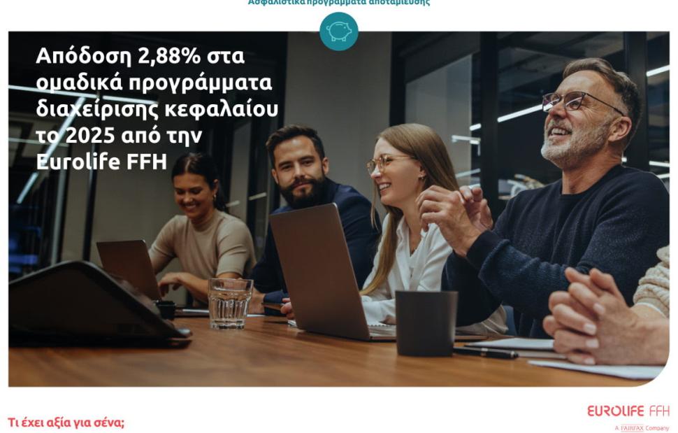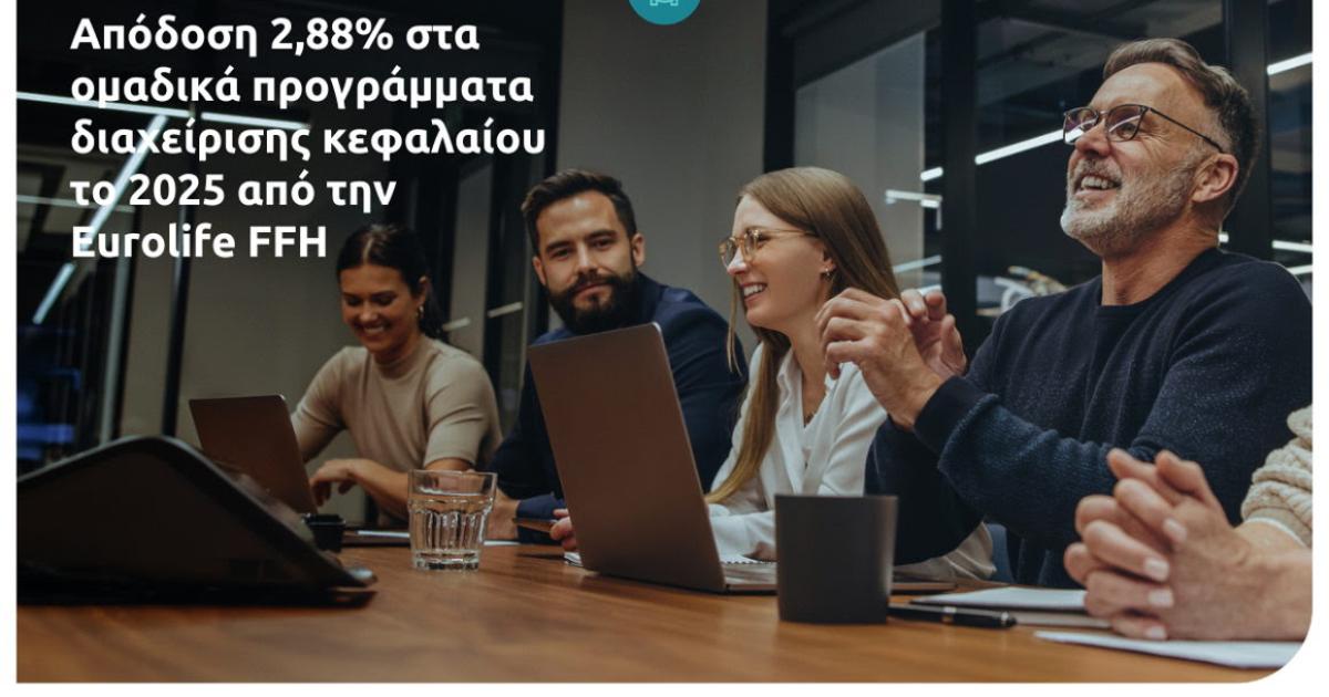 Η Eurolife FFH πέτυχε σημαντικές αποδόσεις στα ομαδικά προγράμματα διαχείρισης κεφαλαίου της και το 2025, συνεχίζοντας να προσφέρει σταθερή αξία στους ασφαλισμένους της με τρόπο που αντανακλά τη μακροχρόνια συνέπεια της επενδυτικής προσέγγισης της εταιρείας. Το χαρτοφυλάκιο επενδύσεων των ομαδικών προγραμμάτων διαχείρισης κεφαλαίου της κατέγραψε απόδοση 2,88%, αναδεικνύοντας τη δέσμευση της εταιρείας να στηρίζει τους ασφαλισμένους της μέσα από την πολύτιμη εμπειρία και τεχνογνωσία στη διαχείριση επενδυτικών χαρτοφυλακίων.