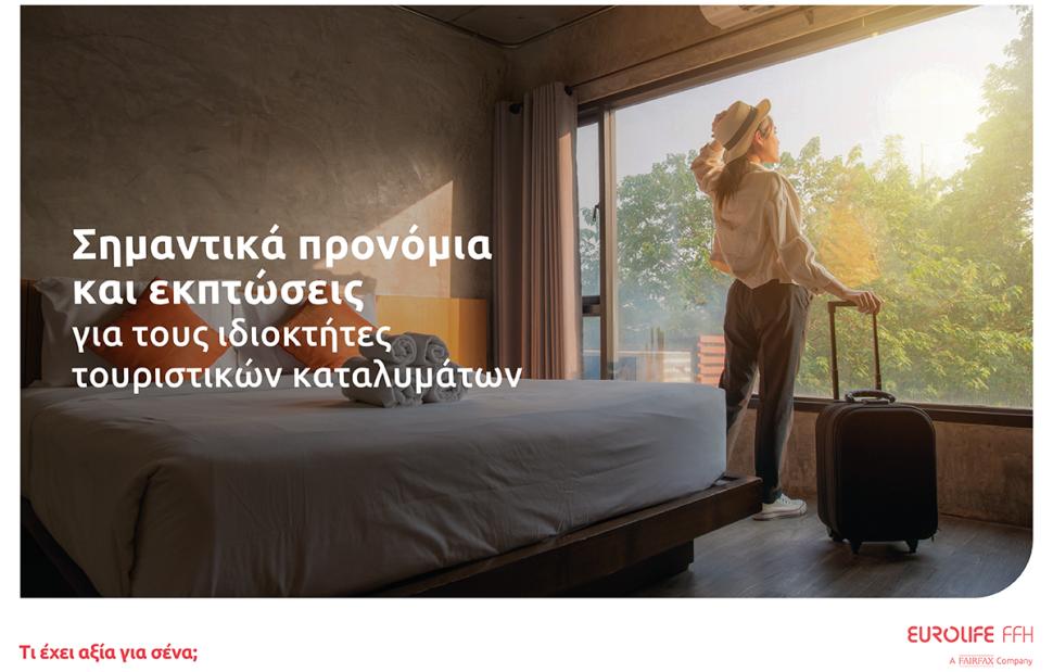 Για τη Eurolife FFH αξία έχει να βλέπει τις επιχειρήσεις να μεγαλώνουν με ασφάλεια. Υποστηρίζει τους ιδιοκτήτες καταλυμάτων - στο πλαίσιο του «ανταποδοτικού τουρισμού» - με την παροχή προνομίων και εκπτώσεων για την επαγγελματική και προσωπική τους ασφάλιση και αποδεικνύει έμπρακτα τη δέσμευσή της να αναπτύσσει λύσεις που ενθαρρύνουν τους ασφαλισμένους της να πετυχαίνουν συνεχώς περισσότερα.