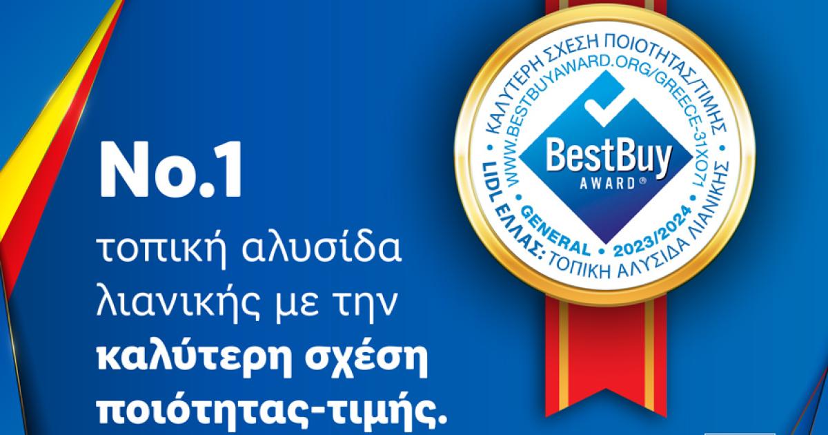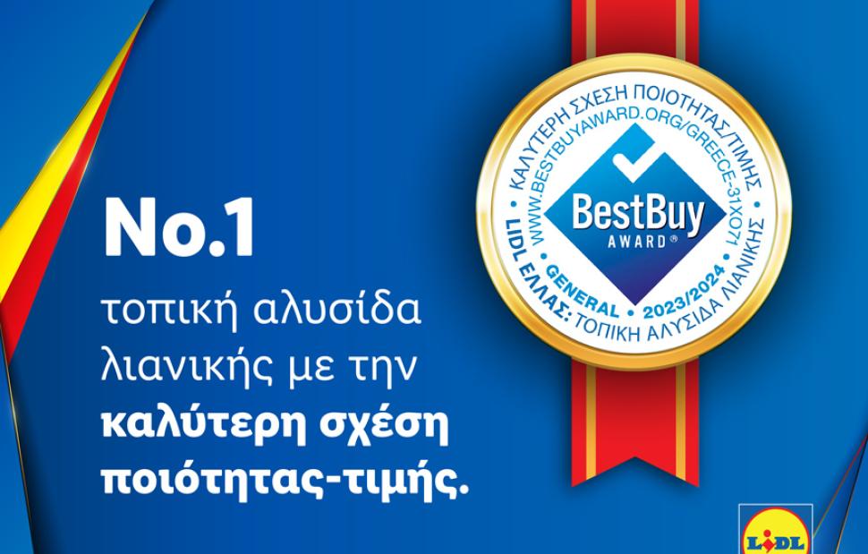 Στην κορυφή της αντίληψης των Ελλήνων καταναλωτών για την καλύτερη σχέση ποιότητας-τιμής βρέθηκε η Lidl Ελλάς, σύμφωνα με αποτελέσματα ανεξάρτητης έρευνας του διεθνούς οργανισμού ICERTIAS-International Certification Association. Η εταιρεία κατέκτησε το Best Buy Award στην κατηγορία «Τοπική αλυσίδα λιανικής» για το έτος 2023/2024 σε σχετική ερώτηση αναφορικά με την εμπειρία των καταναλωτών στην προσφορά της καλύτερης σχέσης ποιότητας-τιμής στην ελληνική αγορά.
