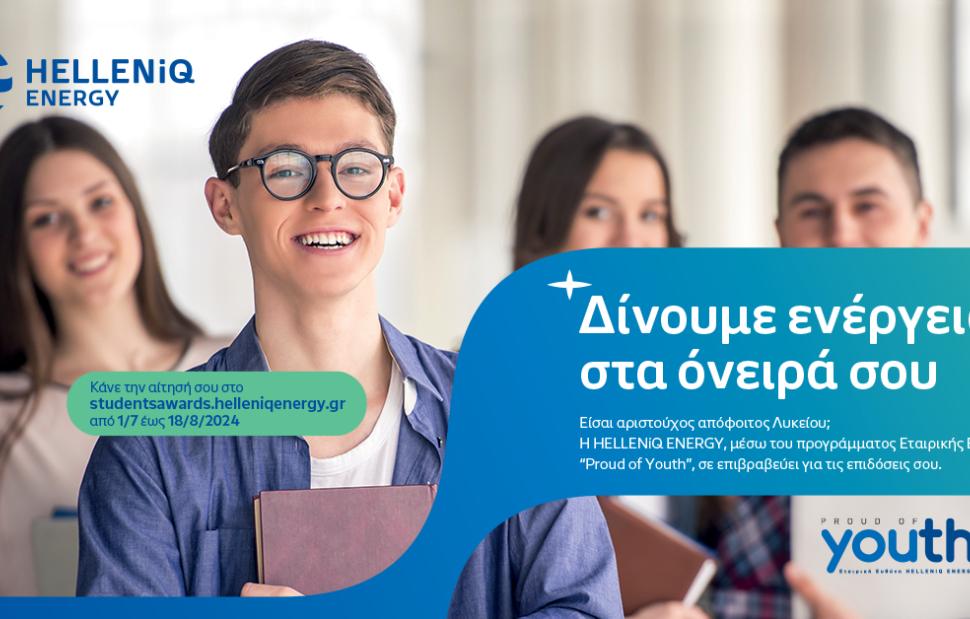 Με το Πρόγραμμα Εταιρικής Ευθύνης «Proud of Youth», η HELLENiQ ENERGY αναγνωρίζει και επιβραβεύει την προσπάθεια που κατέβαλαν οι μαθητές και, παράλληλα, τους στηρίζει με χρηματικά βραβεία για τα πρώτα βήματα της ζωής που θα διανύσουν ως νέοι φοιτητές.