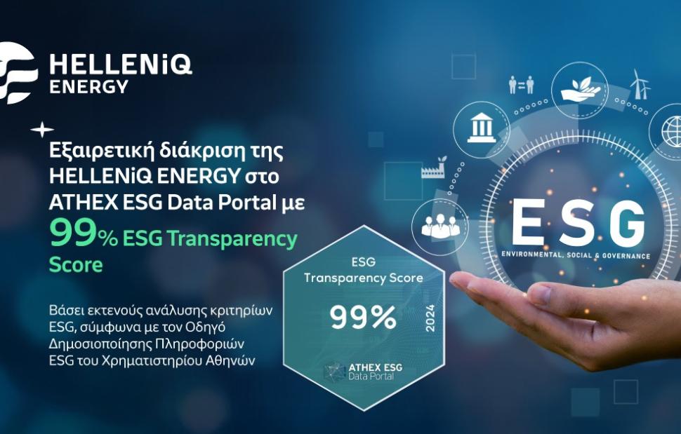 Εξαιρετική διάκριση κατέκτησε η HELLENiQ ENERGY στο ATHEX ESG Data Portal, λαμβάνοντας βαθμολογία 99% για το έτος 2024 και καταλαμβάνοντας τη 2η θέση μεταξύ 92 εισηγμένων εταιρειών που συμμετείχαν στη σχετική αξιολόγηση.